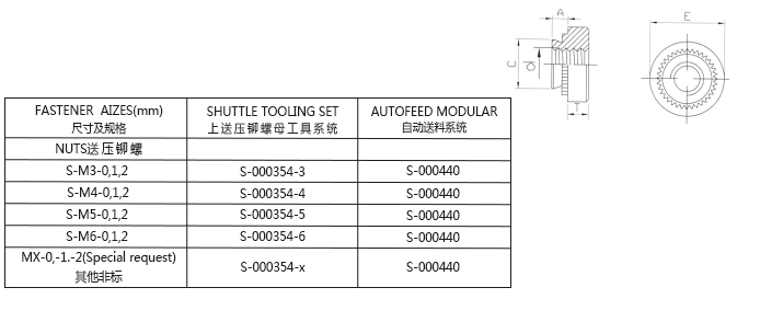 上送壓鉚螺母自動工具系統選型及訂貨號